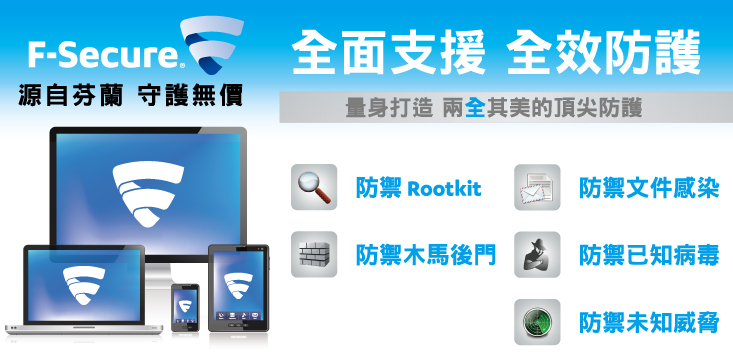 F-Secure芬安全是全球電腦與行動裝置雲端安全領導品牌,無論您是使用電腦或智慧型手機,我們能確保您最重視的資料受到完整的安全保護。F-Secure於全球各地與超過200家電信業者合作提供服務,並擁有數億家庭與企業用戶的信任。F-Secure自1988年成立,總部設於芬蘭赫爾辛基市(Helsinki),已於1999年在NASDAQ OMX赫爾辛基證券交易所上市。歡迎造訪F-Secure網頁:http://www.f-secure.com
